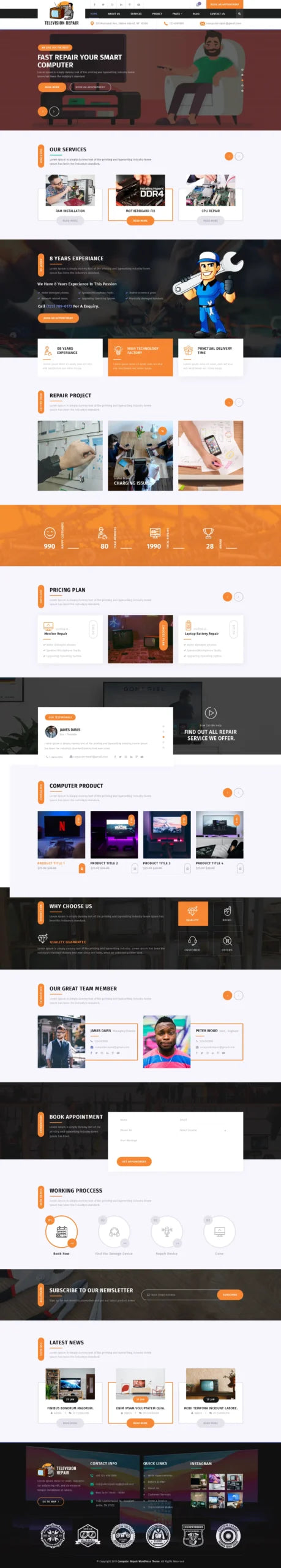 TV Repair WordPress Theme Features